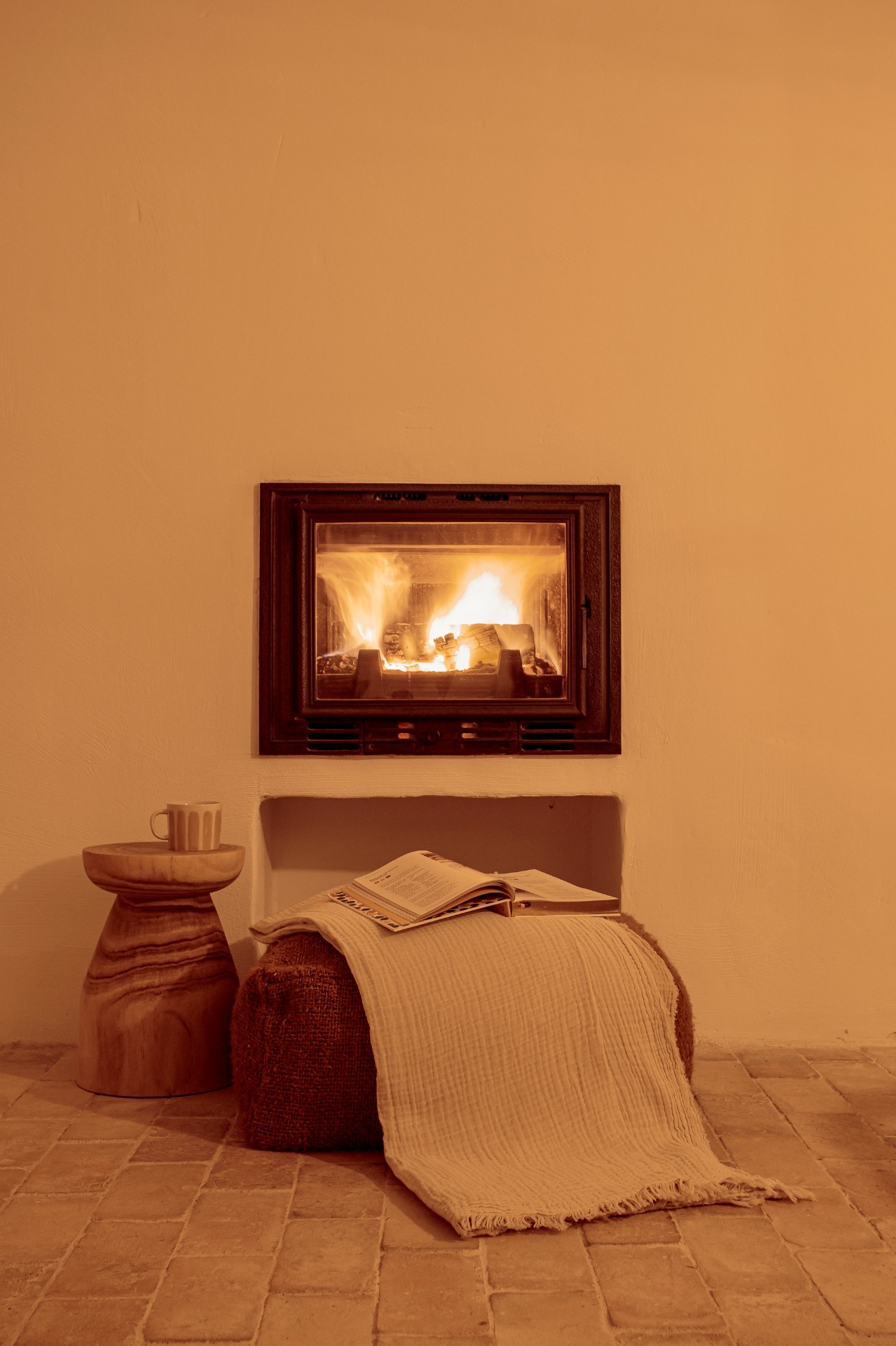Ook in de koudere maanden is het hier heel gezellig door de aanwezigheid van een houtkachel.